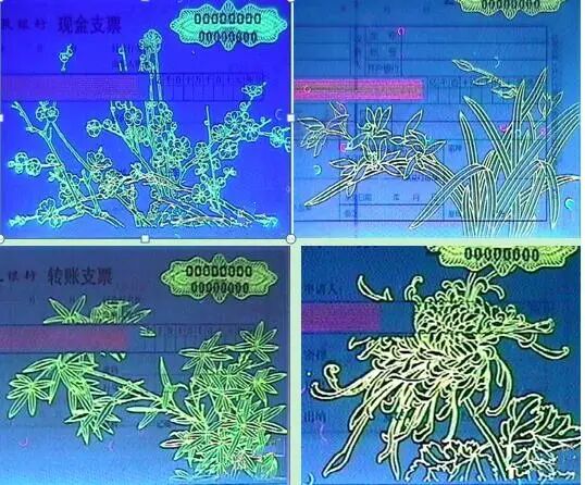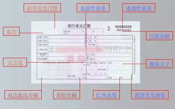 二看:新版票据水印、全埋式安全线、彩虹印刷、渗透性油墨。